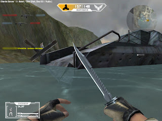 Well, what do you know?! It's alive! I went online for a bit and found no less than six players duking it out! I quickly quit though; my connection was killing me in War Rock to begin with. (I killed two but I don't know what's with that "34" --- even if there's no respawn invincibility, getting killed 34 times in one minute nineteen seconds is well nigh impossible in a medium-sized map with nooks and crannies.)